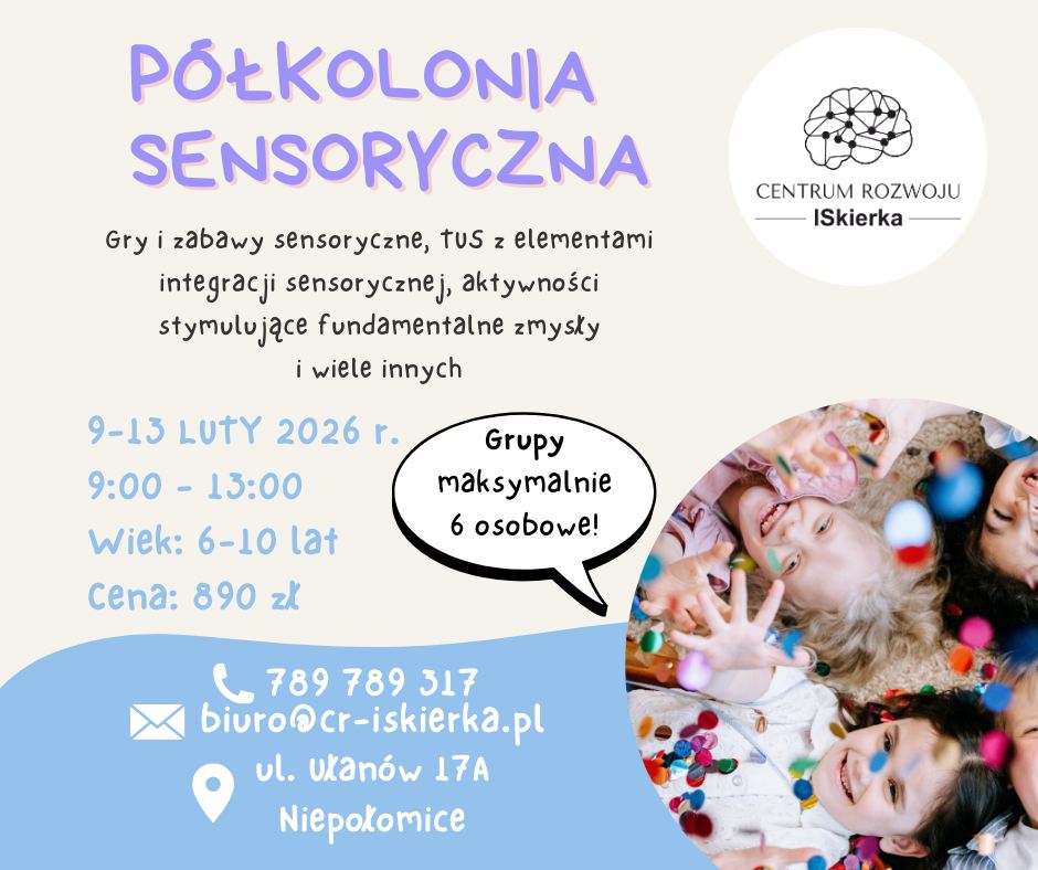 Serdecznie zapraszamy na półkolonie sensoryczną pełną zabaw sensorycznych w małych grupach, TUS z elementami integracji sensorycznej, aktywności stymulujących fundamentalne zmysły prowadzonych przez terapeutów CR ISkierka, którzy na co dzień pracują z dziećmi ![]()